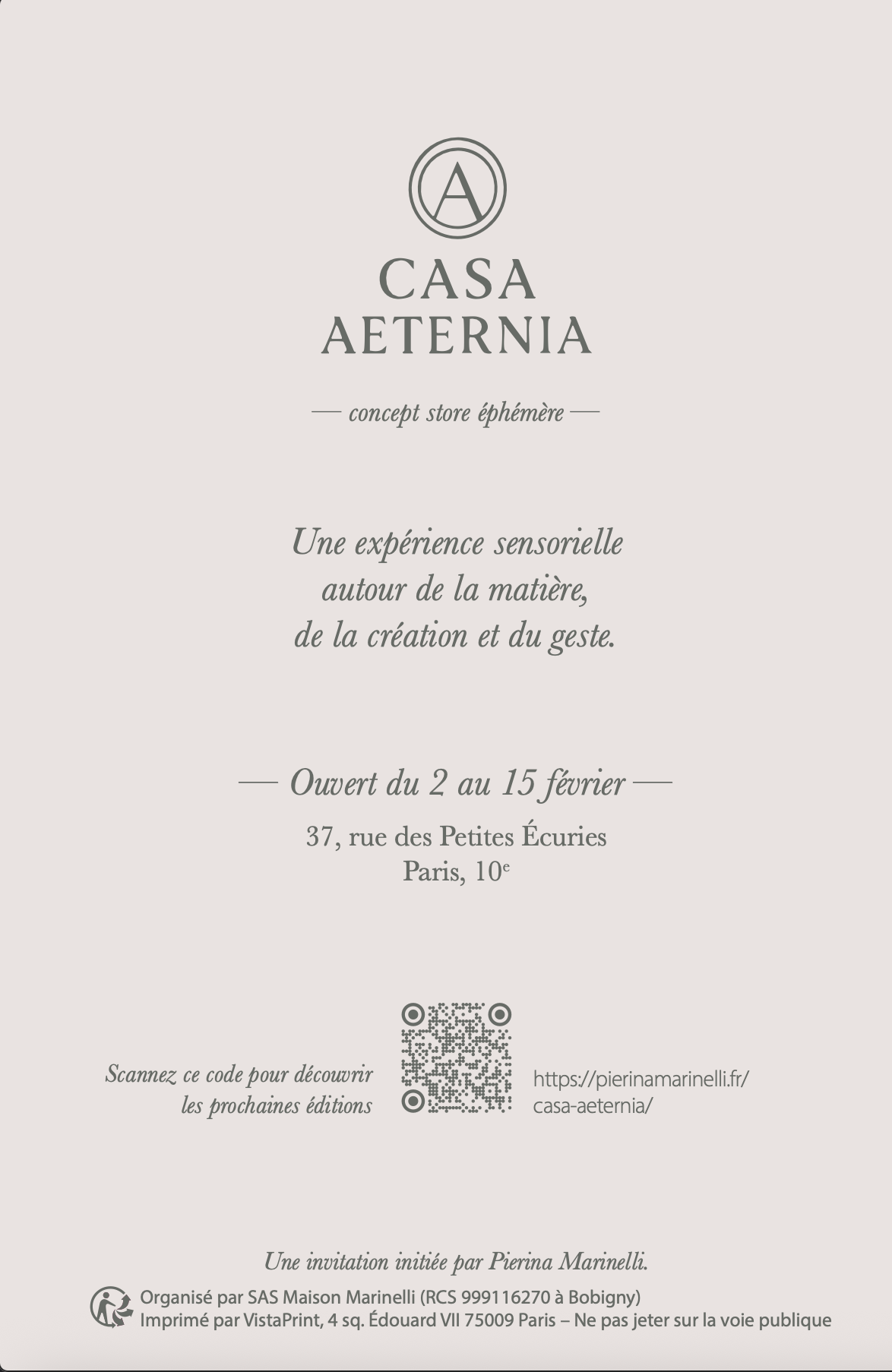 Casa Aeternia est une maison artistique contemporaine, fondée su l'idée d'une création qui traverse les époques.